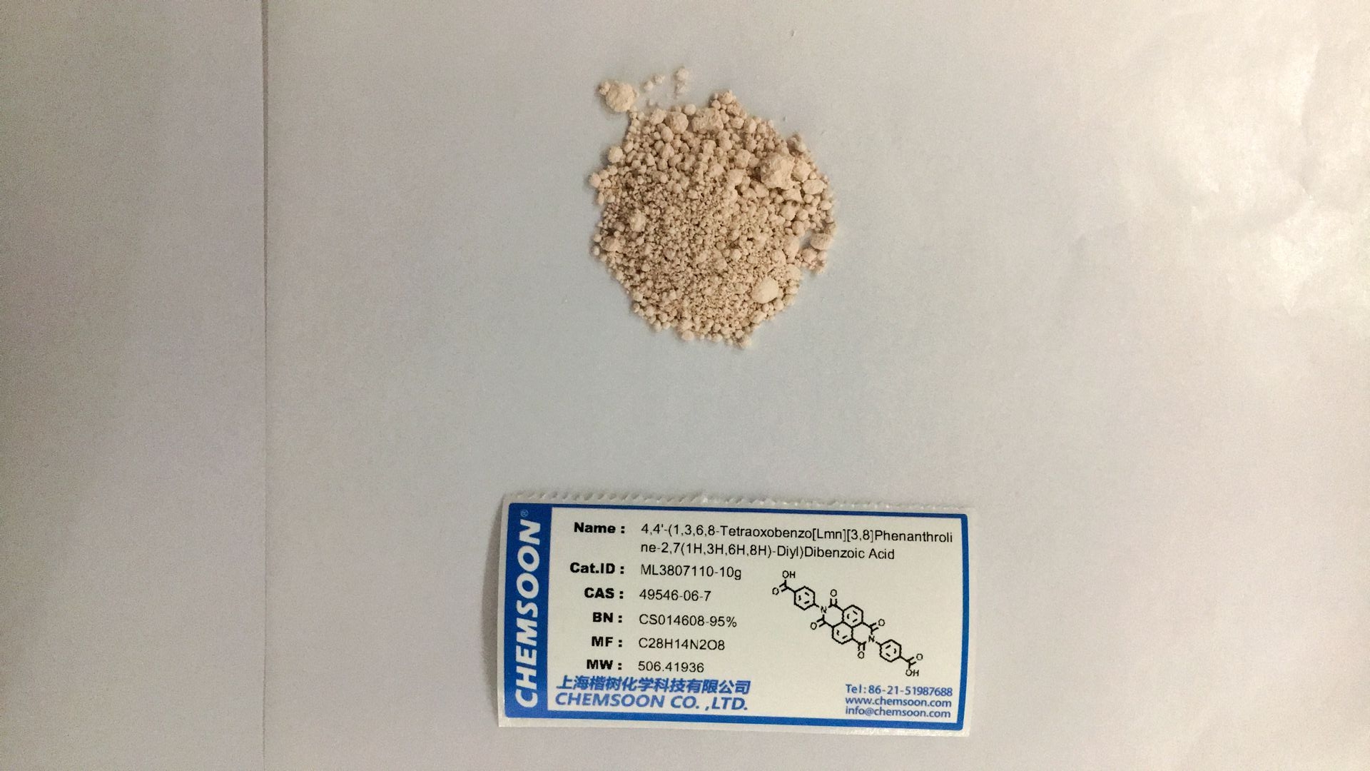 Synonymous:Benzoic-NTCDI ; Benzoic acid, 4,4'-(1,3,6,8-tetrahydro-1,3,6,8-tetraoxobenzo[lmn][3,8]phenanthroline-2,7-diyl)bis-