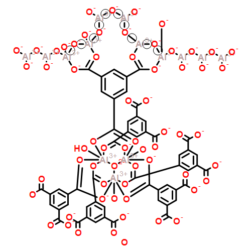 1) Loiseau, Thierry; Lecroq, Ludovic; Volkringer, Christophe; Marrot, Jerome; Ferey, Gerard; Haouas, Mohamed; Taulelle, Francis; Bourrelly, Sandrine; Llewellyn, Philip L.; Latroche, Michel; Journal of the American Chemical Society 2006, 128(31), 10223-10230, DOI: 10.1021/ja0621086 ; MIL-96, a Porous Aluminum Trimesate 3D Structure Constructed from a Hexagonal Network of 18-Membered Rings and μ3-Oxo-Centered Trinuclear Units